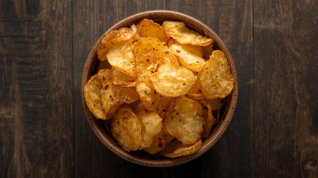 Only if they don’t have oil, salt, or seasoning in them, sweet potatoes or carrots are the best things to use. Regular potato chips are still not safe.